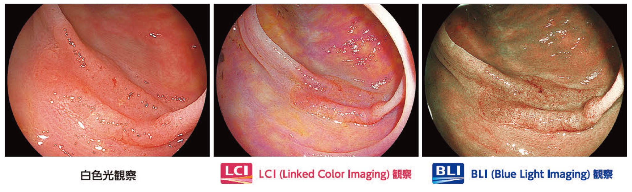 当院では、LED光源搭載の内視鏡システムを導入しております。これによりLED照明の発光強度を高い精度で制御して、白色光と短波長狭帯域光を生成できます。照射した光と画像処理を組み合わせるテクノロジーによって、粘膜表層の微細な血管や構造を強調するなど、病気の早期発見に役立つ観察画像を作り出すことが可能となります。